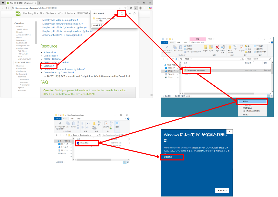 ネットワーク設定をするためにWaveshareの専用アプリケーションが必要で、セキュリティメッセージが表示されるので少し警戒気味になります。