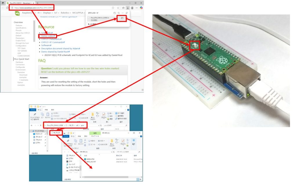 RX_TX.uf2フォルダ : (解凍フォルダ)\pico_ETH_CH9121_CODE\C\RX_TX\uf2\pico