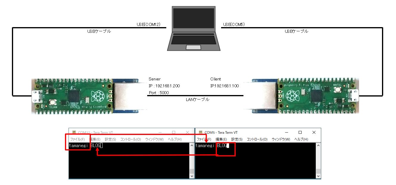 過去の記事では、WiznetのW5100S-EVB-Pico/W5500-EVB-Picoを使ったTCP ソケット通信を紹介しています。