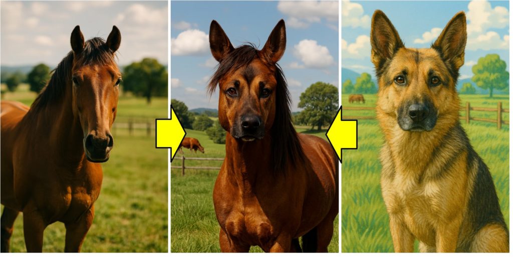 次に馬と犬を掛け合わせた顔が犬の馬?です。