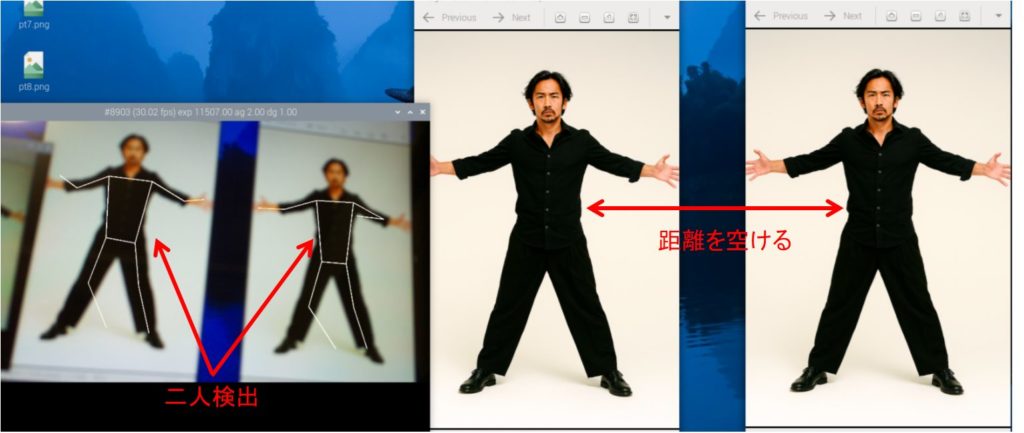 下図は女性の関節を認識したようですが、男性との距離が近いため座標がずれてしまったようです。