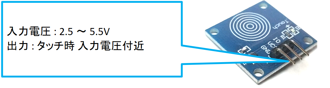 | タッチ中の電圧3.3/5.0V 印加時 | 2.9/4.7V モーメンタリ | 3.2/5.0V モーメンタリ | 3.3/3.3V ラッチ | – / – モーメンタリ |