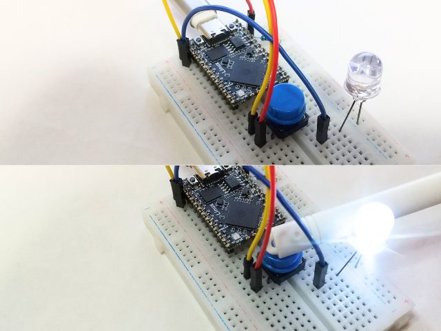 RP2350Aを搭載するRaspberry Pi Pico2では、ボタンの押下状態を読み取るために物理的なプルダウン抵抗が必要でした。