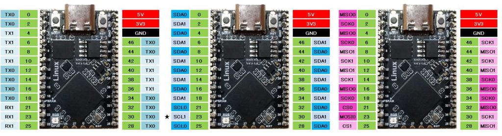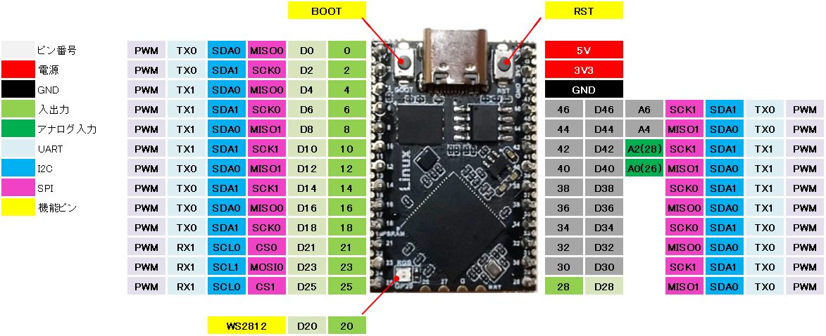 実質UART0とSPI1は使えないので、考慮した設計が必要です。