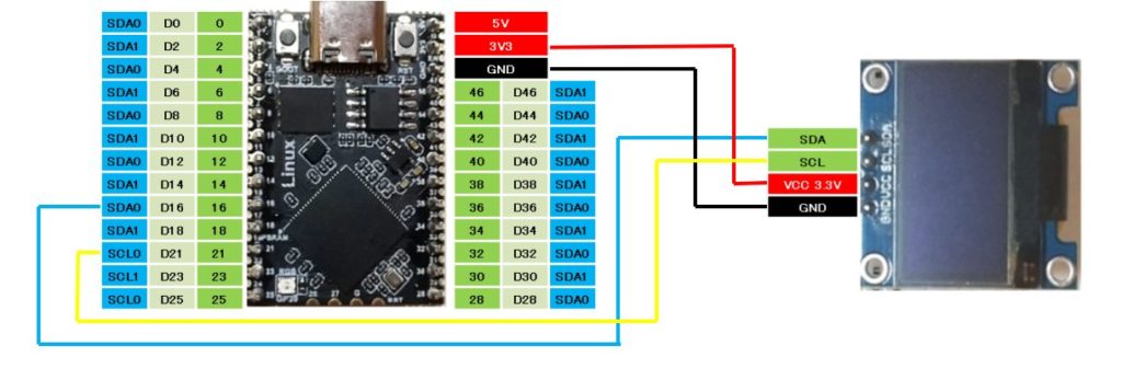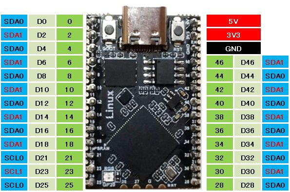 I2CではI2C0, 1 ともに使えます。